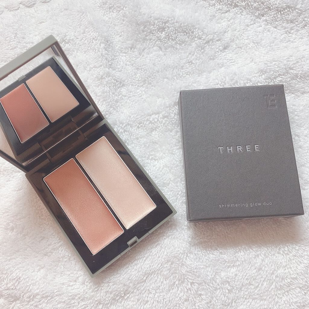 ✔THREEシマリンググローデュオ❁⃘01ハイライトとしてツヤ感が綺麗に出せるうえアイシャドウとして使っても綺麗✨大好きでリピもしたきほぼ毎日使っていたのにいつもの間にか引き出しの奥へ💦久しぶりに使ってみたらやっぱり良い😍また使い始めよう☆....