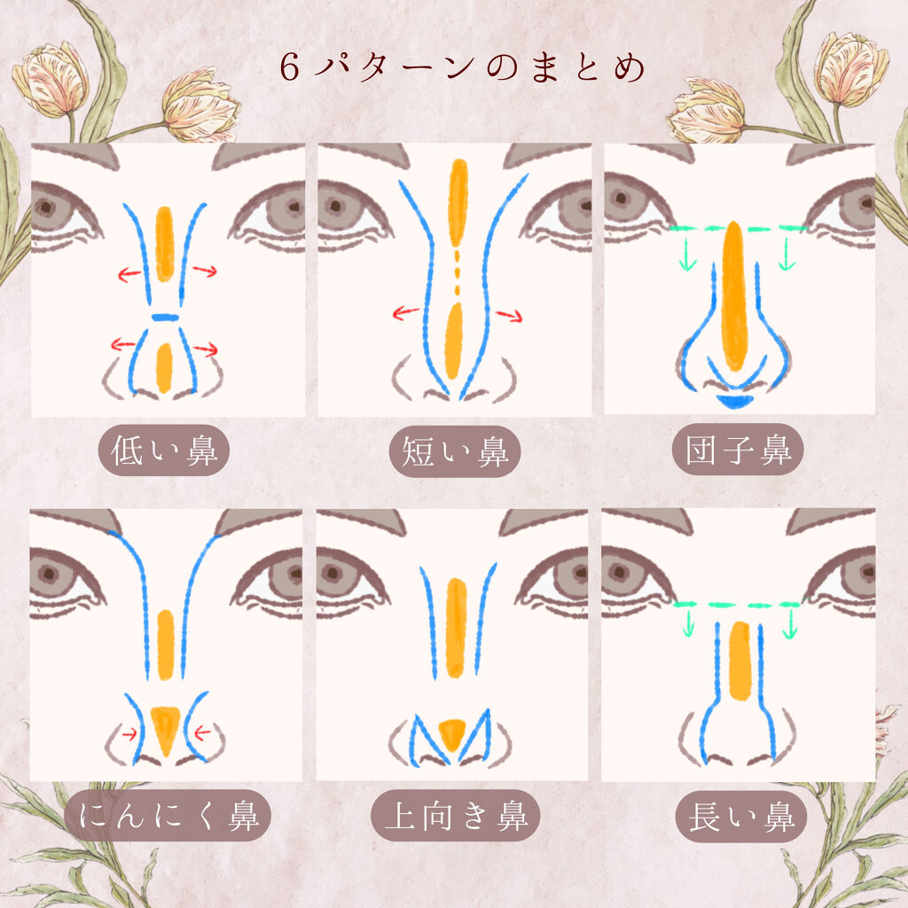 整形せずに鼻の形を変えられるメイク方法です! ハイライトとシェーディングの入れ方を変えるだけで コンプレックスを解消して、 なりたい雰囲気の鼻に近づけます🌷 美人風の筋の通った鼻になるメイクのポイント 韓国風のアップノーズになるメイクのポイント ぜひ試してみてください 💡
