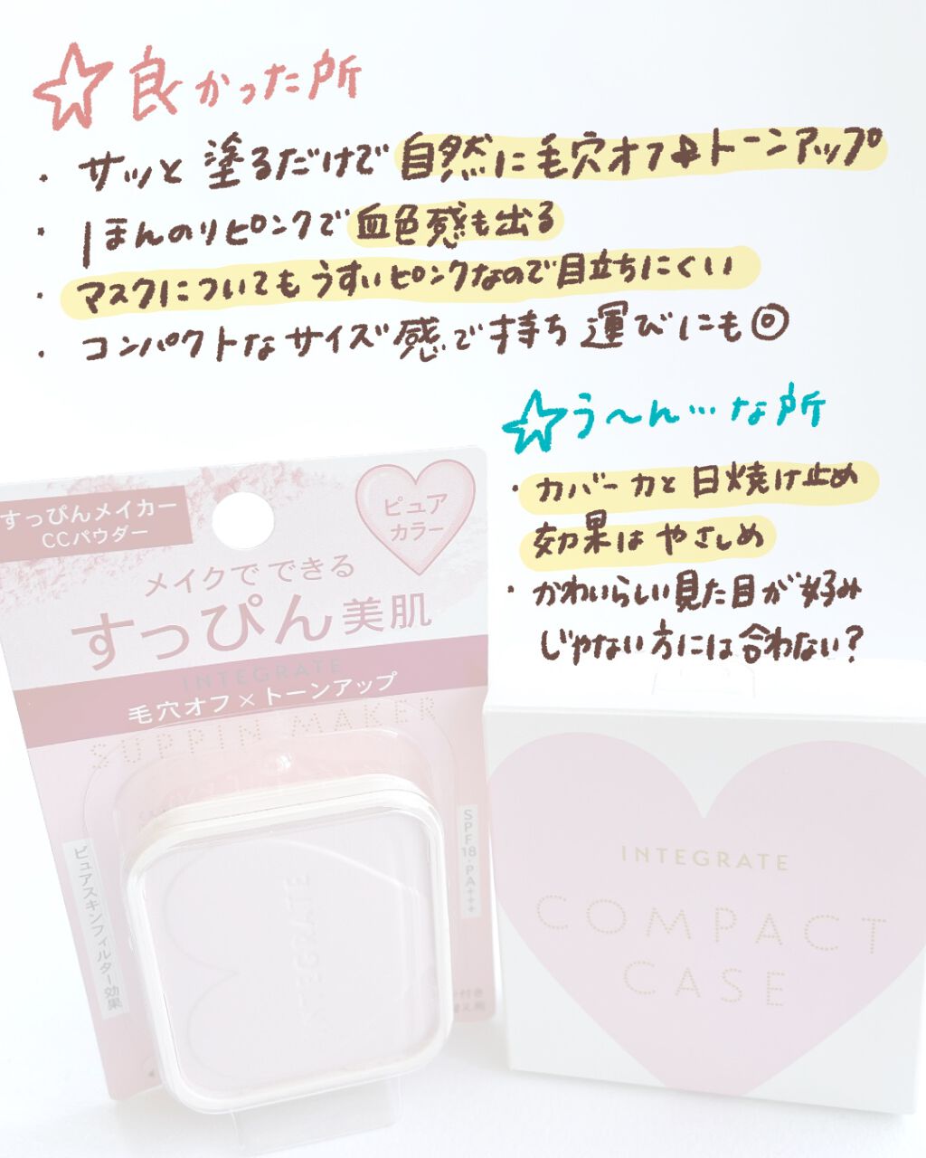 インテグレート すっぴんメイカートーンアップUV ¥1,540トーンアップするので肌が明るく素肌感が出る下地です!「透け感エフェクトパウダー」が毛穴や凸凹をぼかして、くすみない明るさと血色感のある肌にしてくれます✨カバー力も結構高くていい感じ...