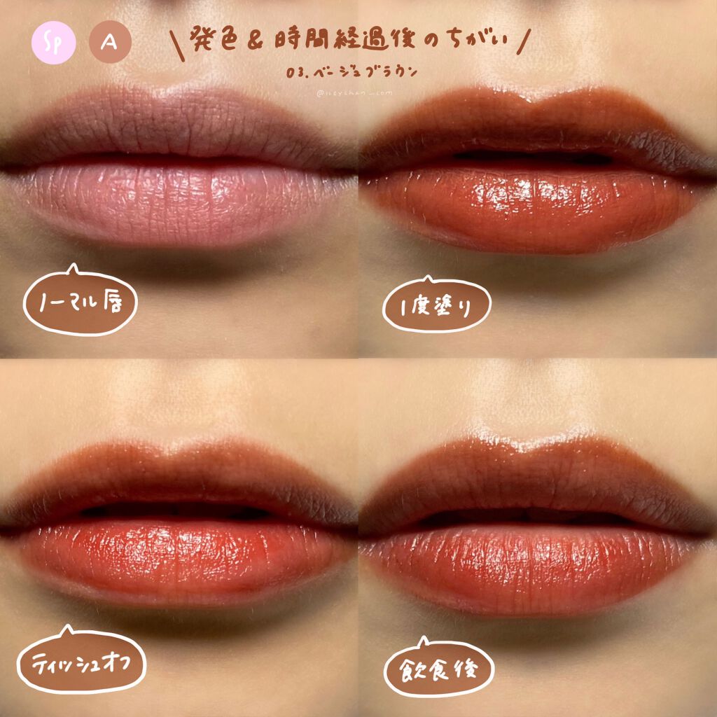 | リップティントランキング第3位 | 重ねて塗っても、ちゅるんと透け感が残って明るめカラーがとっても映える…💕色残りも◎ | 詳細を見る | ||
