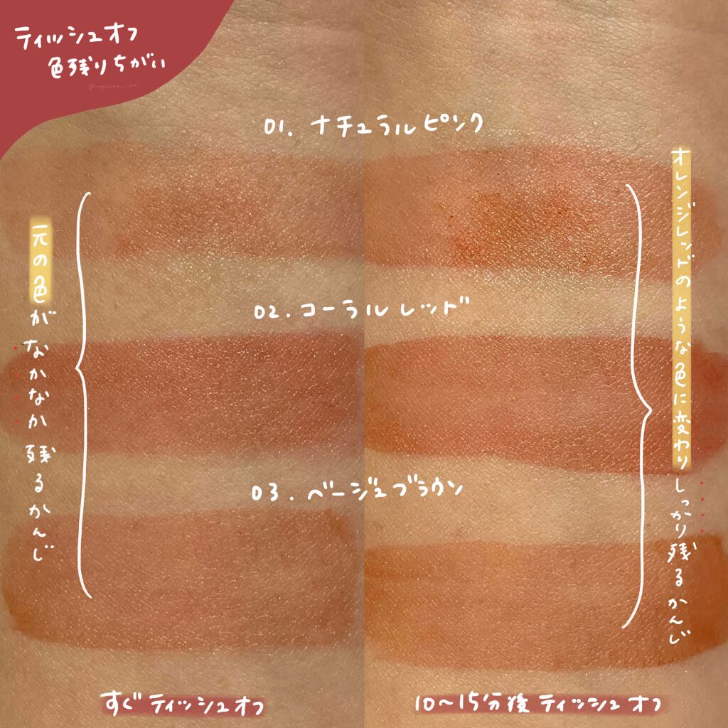 | ティッシュオフしても色残りしやすく、マスクメイクにおすすめです! | 詳細を見る | |