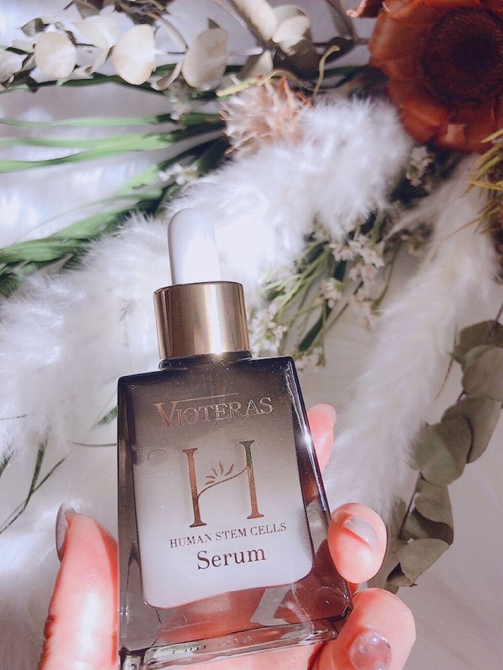 肌の奥深く(角質層)まで届けるためリポソーム化したヒト幹細胞培養エキスを超高濃度「25%」を配合したエイジングケア美容液で、ヴィオテラス独自製法のリポソーム技術により、年齢と共に肌悩みが増える「キメ」「ハリ」「毛穴」「たるみ」「くすみ」にも、より確かに手ごたえを感じるため、ビタミンC誘導体・ペプチドも配合し、多角的アプローチしてくれるのだとか。 毎日使うものなので、極力肌への負担になるものは配合しておらず、6つのフリー設計なので、敏感肌の方にもよさそうです。 スルスルと伸び広がり、どちらかというと、みずみずしい使い心地に思います。べたつきもなく、スーッとなじむのも◎