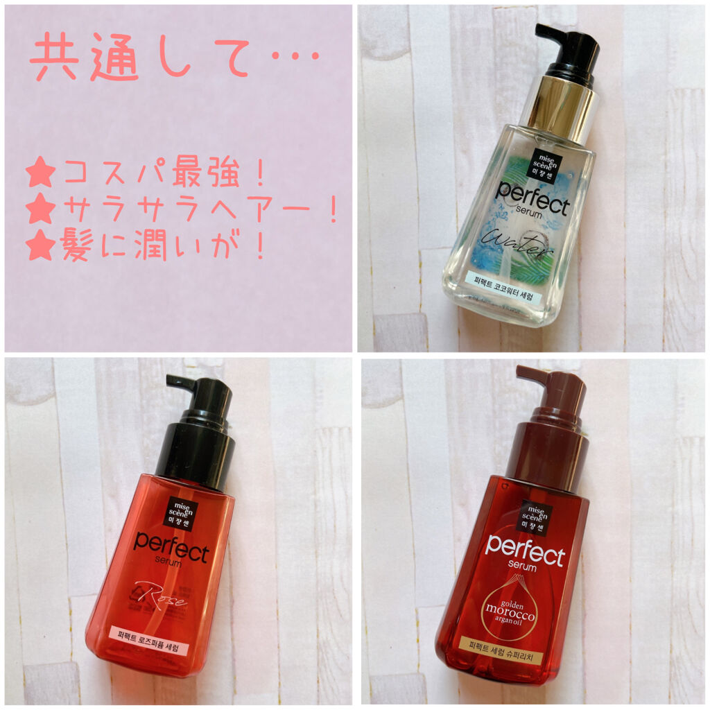 コスパ最強のヘアオイル!*☼**☼*miseensceneパーフェストセラム*☼**☼*3種類比較してみました(画像をスワイプしてご覧下さい♡)▶パーフェクトセラムリッチ▶パーフェクトココウォーターセラム▶パーフェクトセラムローズ買うならQo...