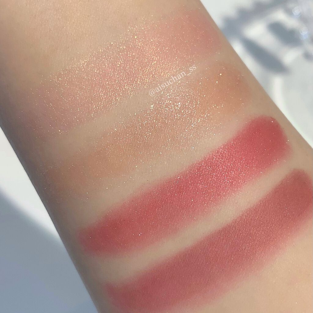 しっとりなめらかな粉質で、肌に光が溶け込む。 ツヤの美しさや発光具合は写真の通り。 ひと塗りで極上の艶を纏うことができます。 私が1番感動したのは 03 パールグロウ 水色やパープルをはじめとした細かいラメがぎっしり。 まるでダイヤモンドのような輝きでこれが最高💎 いざ肌に乗せると透明感たっぷりで白浮きしません。 今日アイシャドウとして使ってみたらまぶたが濡れたように艶めいて最高だった!! ラメ大好き芸人のみなさんは絶対チェックして欲しいです。 パケもしっかり可愛いです♡ 中身も見た目ももはや無敵。 これ、買わない理由ある??