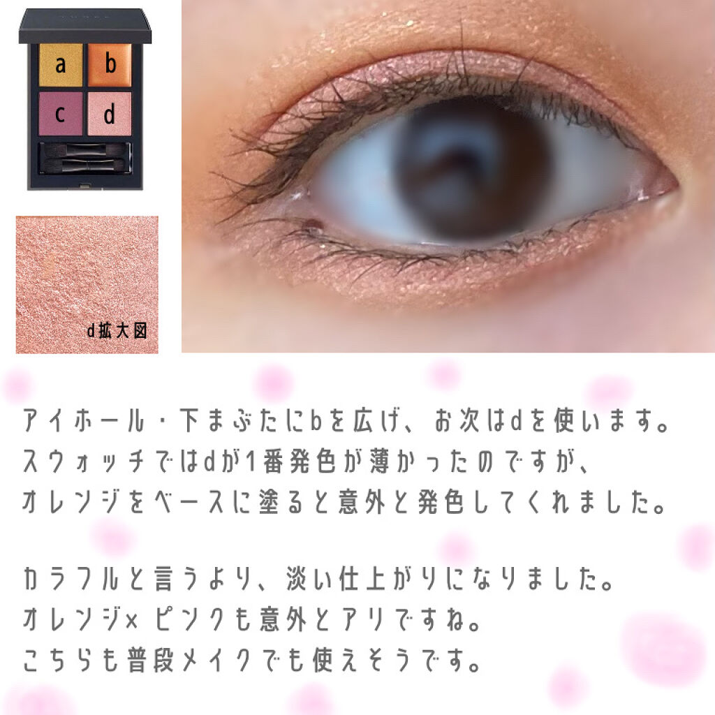 | 4色フル活用しても綺麗に仕上がりクリーム状のアイシャドウも二重に溜まらず優秀♪ | 詳細を見る |
