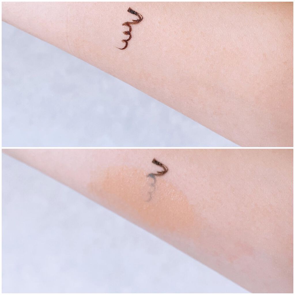 デジャヴュは以前から愛用中で、プチプラで使い心地がお気に入り。 筆丈5mmのショート筆を採用し、短くしなりにくいのが魅力的ですね。極細ラインが安定し描きやすい。 ラインキープ剤を配合し、皮脂/汗/涙/こすれからガード。WPで滲みにくいので今の季節にも◎ ラインを長持ちさせてくれるのに、お湯で簡単OFFの手軽さが嬉しい~ デジャヴュは細ラインが描きやすくナチュラルメイクにぴったり。軽く擦る程度では落ちませんでした。 ミディアムブラウンがお気に入り❤︎︎少し赤よりでなじみの良いブラウン。