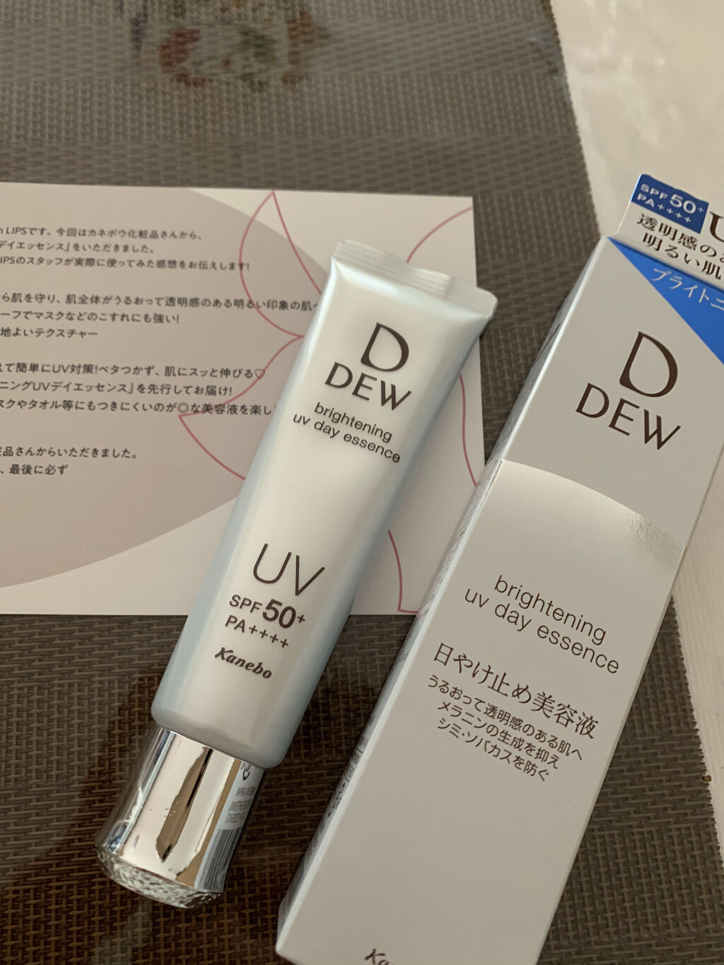 カネボウ化粧品DEWブライトニングUVデイエッセンスLipsさんを通してカネボウさんのDEWブライトニングUVデイエッセンスをいただきました!まず目に飛び込んできたのはSPF50+PA++++夏にもってこいじゃない?まぁ、でも冬でも紫外線はあ...