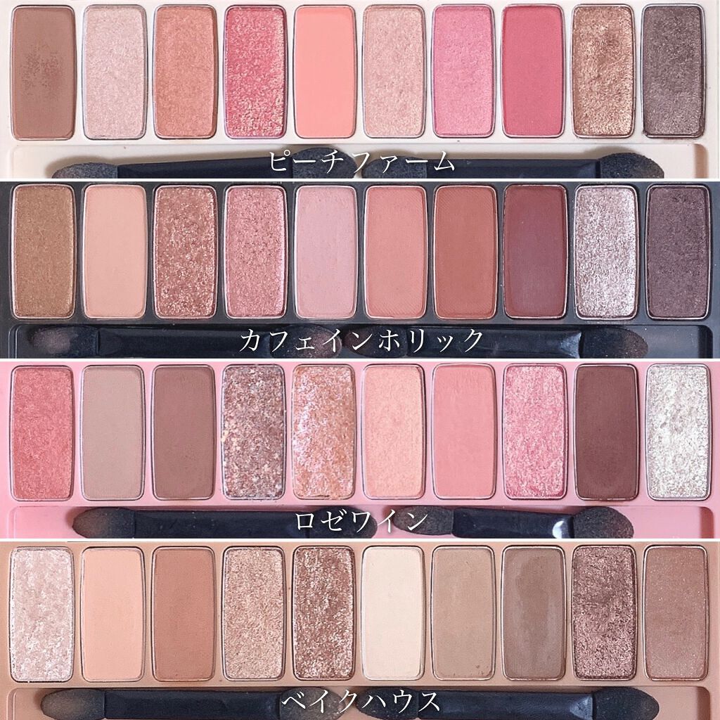 ロゼピンク系のカラーが配色されたパレット! マットもラメも入ってるし、10色もあると色々なメイク出来ると思います。 使いやすい感じのナチュラルな色味の配色になっててほわっとしたピンクメイクになって可愛い🩷 このシリーズほんと可愛いし、持ってないパレットも欲しいな〜