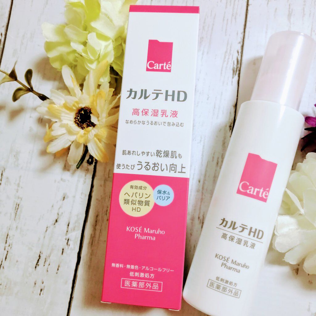 - 【高保湿乳液】 コーセーとマルホの合弁会社コーセーマルホファーマから発売された「カルテHD」。マルホから唯一供給を受けた「ヘパリン類似物質HD」を配合。 厳選のエモリエントオイルを組み合わせたまろやかな感触で、調子を落とした肌もやさしく包み込む高保湿乳液です。 まろやかでとろりとしたエマルジョンは、肌の上でみずみずしく変化してとけこむように角層へと浸透。 過酷な環境でもうるおいをしっかりと閉じ込め長時間キープして、ふっくらなめらか肌に導きます。しっとりするのにベタつかず、毎日心地よく使えます。 <販売名:HDエマルジョン>