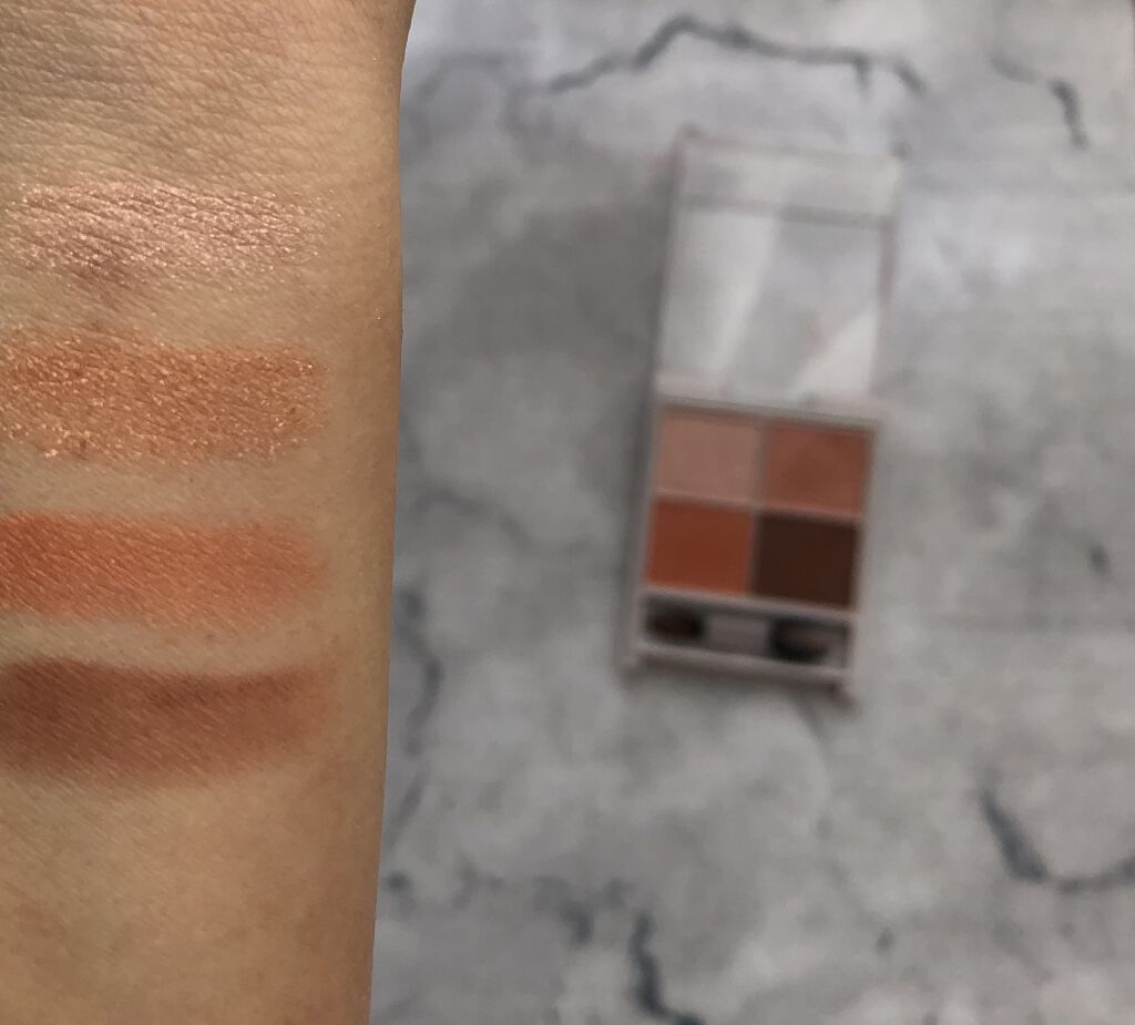 こちらはTFと刻印されており艶があるアイシャドウです。 艶感すごいですし、自然なカラーなので 日常的に使いやすいカラーだと思います◎ 左上のカラーがシャンパンゴールド系かと思いきや意外とシルバー系に発色しました。 普段のトムフォードのアイシャドウは くすみカラーが多くて似合うパレットが なかなかなかったのですが、こちらは使いやすい! 手持ちのクォードのアラベスクはラメの タイプなので別な質感が楽しめて嬉しい..! これからどんどん使っていきたいと思います。