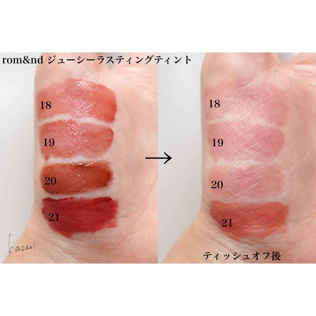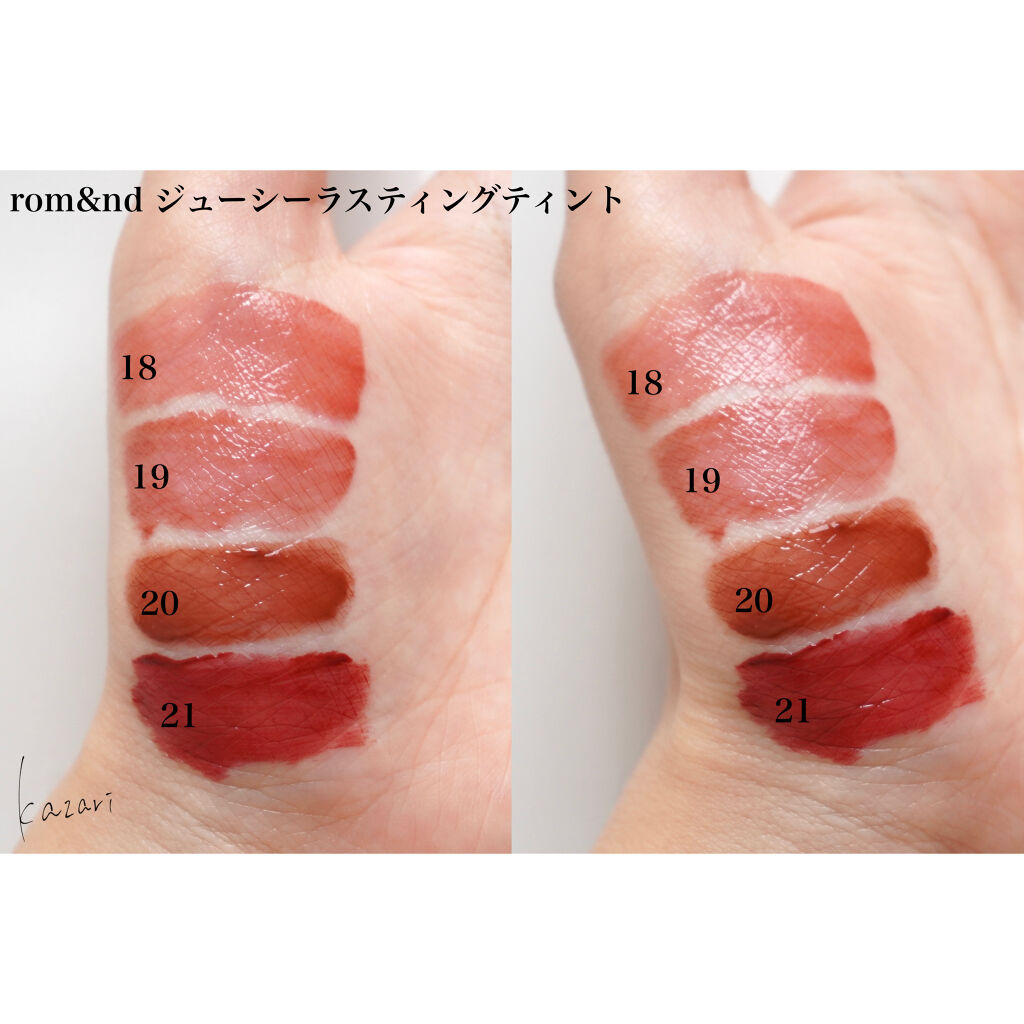 rom&ndジューシーラスティングティント#18MULLEDPEACH#19ALMANDROSE#20DARKCOCONUT#21DEEPSANGRIA去年の秋頃に出ていたrom&ndの新作4色をようやく購入したのでレビューします🌟私はLOF...