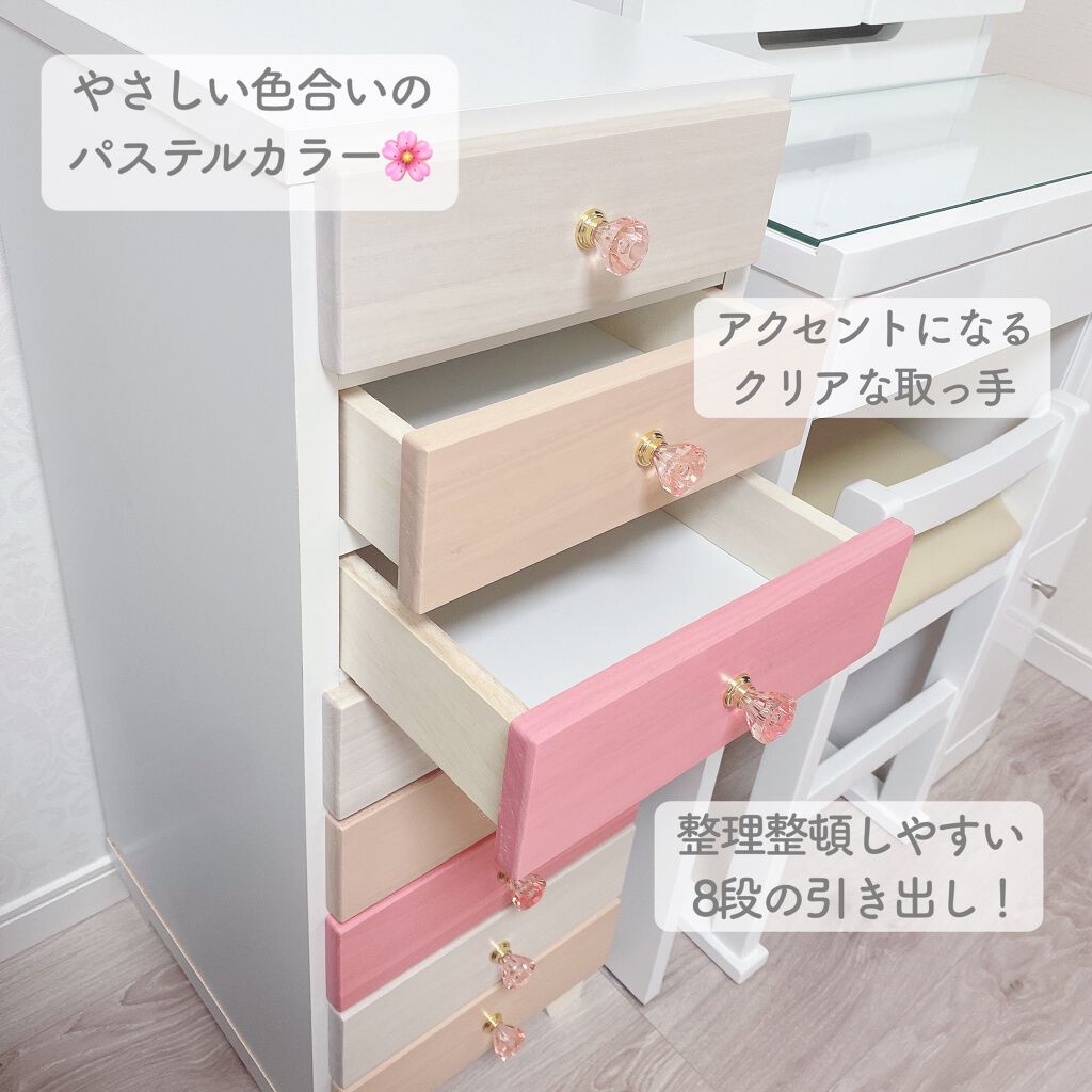 こんにちは!あいりです🎀今回はドレッサーとサイドチェストを公開します♡私事ですが、無事産休に入り時間がたっぷりできたのでついにドレッサーにコスメを収納していきたいと思っております☺️まずは購入したアイテムからご紹介します🌸🌸*⑅︎୨୧┈︎┈︎...