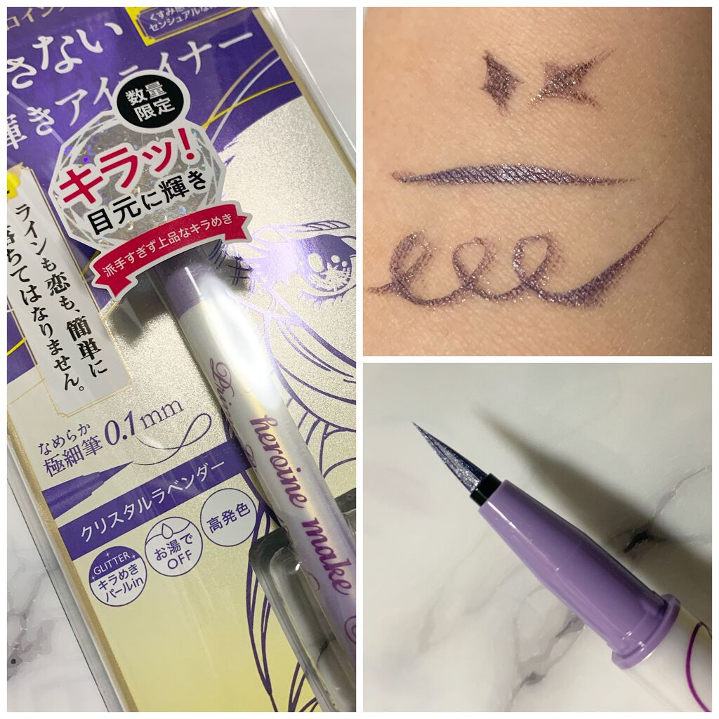- 派手過ぎず上品に輝く大粒のグリッターパールが、キラめく目元を演出! 夜まで落とさない 超!輝きアイライナーが数量限定で登場 ■史上初※1!キラっと輝く 大粒グリッターパールを配合 派手すぎず上品に輝く大粒グリッターパールが、キラめく目元を演出! ※1ヒロインメイク 筆ペンライナー内で。 ■パール専用・新リキッドコントロール機能を採用 輝き&高発色な濃密ラインが、目尻までかすれずに一気に描けます。 ■筆先0.1mm!なめらか国産極細筆 絶妙なコシのある毛筆だから目尻のハネやまつ毛の隙間など、細部まで狙い通り。 ■夜まで美しく!ウォータープルーフ処方 耐久性の高い成分をオリジナル比率でブレンドした耐久処方。 涙・汗・皮脂・こすれに強く、落とすまで美しいラインをキープします。 ■濃密&高発色!ロングラスティングカラー 伸縮性の高い密着成分をダブルで配合。ピタッと定着し、ワンストロークで色ムラのない、濃密&高発色なラインが描けます。 ■にじまないのにお湯でオフ にじみに強いのに、お湯で簡単にオフ出来ます。 *落ちにくく感じる場合は洗顔料(石けん等)をご使用ください。 ■抜群の速乾性 速乾性に優れ、メイク中のよれ、にじみに、まばたきにも負けません。 ■6種類の美容液成分配合 ・ヒアルロン酸 ・コラーゲン ・野バラエキス※2 ・パンテノール ・リピジュア®※3 ・センブリエキス ※2 カニナバラ果実エキス ※3 ポリクオタニウム - 51