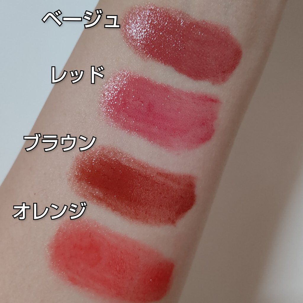 CEZANNEのラスティンググロスリップ左からBE1RD11101ブラウン系ティントタイプ501オレンジ系ティントタイプBE1はシンプルなピンクベージュお仕事用に使いますRD11はクリアレッドという色名だったかな真っ赤にならず血色良くしてくれ...