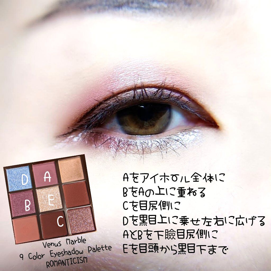 VenusMarbleVenusMarble9色アイシャドウパレットRomanticismパケからもう綺麗で素敵ー❣️今回は、右側中心のブラウン系でまとめました❣️左上のブルーは、涙袋、黒目上につけましたが、ブラウンの発色に負けました🤣次回は...