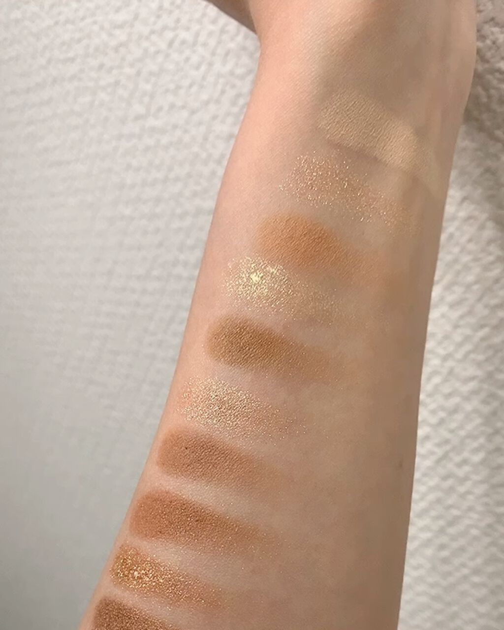 - ひとつのパレットにマット、シマー、グリッターなど多様な質感を贅沢に使用。塗る順序やカラーの組み合わせを変えるだけでデイリーメイクにも、特別な日のお出かけメイクにもできる優れもの。また粉飛びせず、まぶたにしっかり密着します。