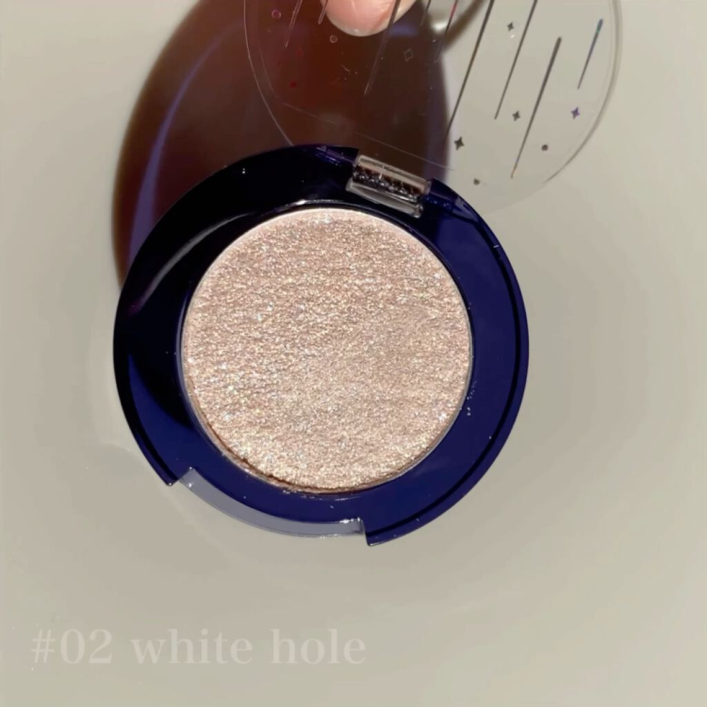 - ココロ踊るプリズムアイ ①高密着で粉飛びしにくい ②しっとりとした質感で潤んだ目元に ③多彩なラメが立体感を演出
