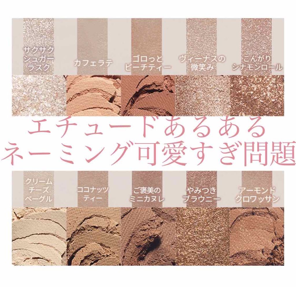 - 肌なじみの良い、鮮やかな発色で目元を華やかに彩る捨て色なしの10色アイシャドウパレット 異なる3種のテクスチャーを自由に組み合わせて、グラデーションも思いのままに。 NEW 2023.4 ・肌トーンにあう配色を詰め込んだトレンドカラー 肌トーンに合わせて、自分に似合うトレンドカラーが楽しめる♡ パーソナルカラー×トレンドカラーの掛け合わせパレットで、デイリーメイクもスペシャルメイクも気分にあわせてなりたい自分に! ・むにゅっとジェル質感ラメで高密着、煌めく目元 パレットの中でもポイントとなる大きめ粒子のラメは、ジェルのような新質感で落ちにくく肌にぴったりと密着します。キラキラとした目元をキープします。 ・使うカラーは大きめに!リアル捨て色なしパレット ベースやラメのよく使うカラーと締め色や濃い色等の減りが少ないカラーを異なるサイズで詰め込んだ、リアル捨て色なしパレット! <使用方法> 付属のデュアルシャドウブラシでベースカラーをまぶた全体に塗り広げます。細いブラシでグラデーションや目尻、アイライン、涙袋などのポイントカラーをのせて仕上げます。