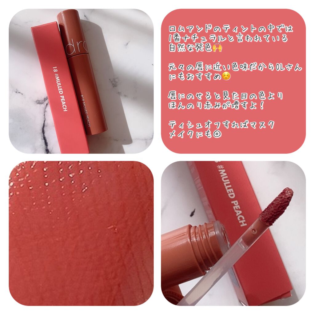 ロムアンドといえばジューシーラスティングティントと紐づくくらい、最も有名なティントと言っても過言ではない🫶 二重コーティングされたかのようなつやぷる光沢感がとにかく可愛いザジューシーラスティングティント💋 私のお気に入りはもちろん、ピーチピーチミーてす🍑