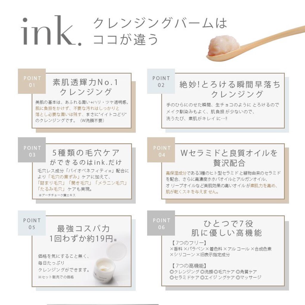\クレンジングが変わればお肌が変わる‼︎/美容のプロが集まるイベントで約30秒に1個売れた商品‼︎▼ink.クレンジングバームサロン技術から生まれたワンランク上の本格クレンジングバーム。5種類の毛穴の悩みをマルチにケアできる毛穴レス成分を配合...