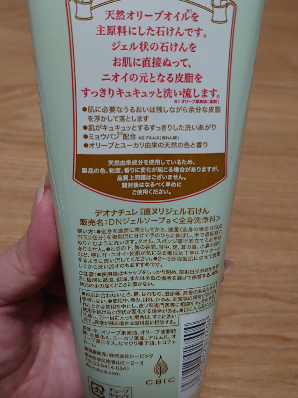 - \11年間ず~っと売上No.1*直ヌリ制汗デオドラントブランド/ 泡立てずに!オリーブのジェルの力で皮脂・ニオイまで**洗い落とす全身洗浄料「直ヌリジェル石けん」 ◆◆商品特長◆◆ 1.ニオイの原因となる酸化した皮脂汚れをすっきりと落としながら、うるおいは保つ 2.肌がキュキュッとする、新感覚のすっきりとした洗いあがり 3.主原料は天然オリーブオイル***で合成香料、着色料、防腐剤、無添加 オリーブとユーカリ由来の天然の色と香り 4.ミョウバン配合**** ◆◆こんな方へおすすめ◆◆ ・日ごろから制汗デオドラントを使っている人 ・いつも使っているボディソープでは汗やニオイがすっきり落とせていない気がする人 ・とにかく汗・ニオイをしっかり落としたいと思っている人 ==注意== ●お肌に合わないとき、傷、はれもの、湿疹等、異常のあるときは使用しない。●使用中、赤み、はれ、かゆみ、刺激等の異常があらわれたときは使用を中止し、皮フ科専門医等に相談する。そのまま使用を続けると症状が悪化する場合がある。●目に入らないよう注意し、万一目に入った場合は、すぐに洗い流す。異常が残る場合は眼科医に相談する。●使用後はキャップをしっかり閉め、直射日光のあたる場所、極端に高温、低温、または多湿の場所を避けて保管する。●乳幼児の手の届くところに置かない。 販売名:DNジェルソープa *インテージSRI+制汗剤市場 2013年5月~2024年4月 ソフトストーンW(販売名:デオナチュレソフトストーンEX(リニューアル前処方)・DN薬用スティックFe)累計販売金額 **ニオイの元となる皮脂を洗浄することによる ***基剤:オリーブ果実油 ****アルムK(収れん剤)