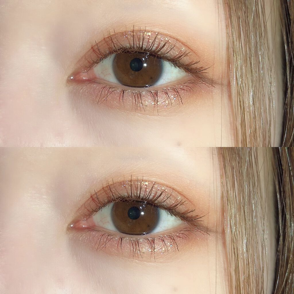 よくパレットのなかで明るいカラーをベースにまぶたに広く塗ることが多いのですが、パール感のあるカラーを避ける🙆♀️! パール感たっぷりの明るいカラーは涙袋に使うぐらい光を集めてぷっくり見せてくれるので、まぶたに広く使うと腫れぼったく見えがち😓 目元を明るくみせてくれたり、次に使うアイシャドウをぼかしやすくしてくれるけど、すっ飛ばしてメインのカラーを塗っちゃう✊🏻❤️🔥 涙袋にはたっぷり塗ってぷっくり見せる🙆♀️💕 シルキースフレアイズのマットタイプはすごく優れているな〜と感じました☺️💗 赤やオレンジなどは、入れすぎると腫れぼったく見えやすいので、見せたいカラーは下まぶた目尻にのせて色をたのしむ♡♡ パール感なしの透けマットだけじゃ物足りない… そう感じさせない華やかなラメが左上に入っているので黒目上と涙袋にのせるとすごく可愛い仕上がりに😍! 厄介な左右差のお陰でマットアイシャドウが好きになりました😌💕