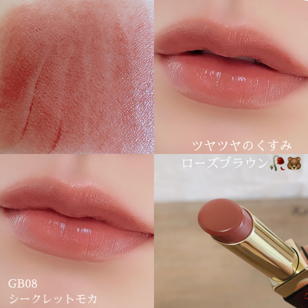 - <GB03 アプリコットシナモン> リンゴ酸ジイソステアリル、テトラエチルヘキサン酸ペンタエリスリチル、トリイソステアリン酸ポリグリセリル-2、水添ポリイソブテン、ヒドロキシアルキル(C16-18)ヒドロキシダイマージリノレイルエーテル、ワセリン、ポリエチレン、キャンデリラロウエステルズ、マイクロクリスタリンワックス、水添ポリデセン、アルガニアスピノサ核油、セラミドEOP、セラミドNG、セラミドNP、セラミドAP、水添レシチン、ダイズステロール、(HDI/トリメチロールヘキシルラクトン)クロスポリマー、カプリル酸グリセリル、トコフェロール、硫酸Ba、(+/-) シリカ、ラウロイルリシン、黄4、黄5、酸化チタン、酸化鉄、水酸化Al、青1、赤104(1)、赤201、赤202 <GB06 ショコラベリー> テトラエチルヘキサン酸ペンタエリスリチル、リンゴ酸ジイソステアリル、トリイソステアリン酸ポリグリセリル-2、水添ポリイソブテン、ヒドロキシアルキル(C16-18)ヒドロキシダイマージリノレイルエーテル、ワセリン、ポリエチレン、キャンデリラロウエステルズ、マイクロクリスタリンワックス、水添ポリデセン、アルガニアスピノサ核油、セラミドEOP、セラミドNG、セラミドNP、セラミドAP、水添レシチン、ダイズステロール、(HDI/トリメチロールヘキシルラクトン)クロスポリマー、カプリル酸グリセリル、トコフェロール、硫酸Ba、シリカ、ラウロイルリシン、黄4、黄5、酸化チタン、酸化鉄、水酸化Al、青1、赤201、赤202 <GB08 シークレットモカ> リンゴ酸ジイソステアリル、テトラエチルヘキサン酸ペンタエリスリチル、トリイソステアリン酸ポリグリセリル-2、水添ポリイソブテン、ヒドロキシアルキル(C16-18)ヒドロキシダイマージリノレイルエーテル、ワセリン、ポリエチレン、キャンデリラロウエステルズ、マイクロクリスタリンワックス、水添ポリデセン、アルガニアスピノサ核油、セラミドEOP、セラミドNG、セラミドNP、セラミドAP、(HDI/トリメチロールヘキシルラクトン)クロスポリマー、カプリル酸グリセリル、トコフェロール、フィトステロールズ、水添レシチン、硫酸Ba、(+/-) シリカ、ラウロイルリシン、黄4、黄5、酸化チタン、酸化鉄、水酸化Al、青1、赤104(1)、赤201、赤202 <GB09 セピアモーヴ> リンゴ酸ジイソステアリル、テトラエチルヘキサン酸ペンタエリスリチル、トリイソステアリン酸ポリグリセリル-2、水添ポリイソブテン、ヒドロキシアルキル(C16-18)ヒドロキシダイマージリノレイルエーテル、ワセリン、ポリエチレン、キャンデリラロウエステルズ、マイクロクリスタリンワックス、水添ポリデセン、アルガニアスピノサ核油、セラミドEOP、セラミドNG、セラミドNP、セラミドAP、(HDI/トリメチロールヘキシルラクトン)クロスポリマー、カプリル酸グリセリル、トコフェロール、フィトステロールズ、水添レシチン、硫酸Ba、(+/-) シリカ、ラウロイルリシン、黄4、黄5、酸化チタン、酸化鉄、水酸化Al、青1、赤104(1)、赤201、赤202 <GB11 ポメグラネイト> テトラエチルヘキサン酸ペンタエリスリチル、リンゴ酸ジイソステアリル、トリイソステアリン酸ポリグリセリル-2、水添ポリイソブテン、ヒドロキシアルキル(C16-18)ヒドロキシダイマージリノレイルエーテル、ワセリン、ポリエチレン、キャンデリラロウエステルズ、マイクロクリスタリンワックス、水添ポリデセン、アルガニアスピノサ核油、セラミドEOP、セラミドNG、セラミドNP、セラミドAP、(HDI/トリメチロールヘキシルラクトン)クロスポリマー、カプリル酸グリセリル、トコフェロール、フィトステロールズ、水添レシチン、硫酸Ba、(+/-) シリカ、ラウロイルリシン、黄4、黄5、酸化チタン、酸化鉄、水酸化Al、青1、赤201、赤202 <GB12 ホットカラメル> リンゴ酸ジイソステアリル、テトラエチルヘキサン酸ペンタエリスリチル、トリイソステアリン酸ポリグリセリル-2、水添ポリイソブテン、ヒドロキシアルキル(C16-18)ヒドロキシダイマージリノレイルエーテル、ワセリン、ポリエチレン、キャンデリラロウエステルズ、マイクロクリスタリンワックス、水添ポリデセン、アルガニアスピノサ核油、セラミドEOP、セラミドNG、セラミドNP、セラミドAP、(HDI/トリメチロールヘキシルラクトン)クロスポリマー、カプリル酸グリセリル、トコフェロール、フィトステロールズ、水添レシチン、硫酸Ba、(+/-) シリカ、ラウロイルリシン、黄4、黄5、酸化チタン、酸化鉄、水酸化Al、青1、赤104(1)、赤201、赤202 <GB01 レッドガーネット> リンゴ酸ジイソステアリル、テトラエチルヘキサン酸ペンタエリスリチル、トリイソステアリン酸ポリグリセリル-2、水添ポリイソブテン、ヒドロキシアルキル(C16-18)ヒドロキシダイマージリノレイルエーテル、ワセリン、ポリエチレン、キャンデリラロウエステルズ、マイクロクリスタリンワックス、水添ポリデセン、アルガニアスピノサ核油、セラミドEOP、セラミドNG、セラミドNP、セラミドAP、水添レシチン、ダイズステロール、(HDI/トリメチロールヘキ
