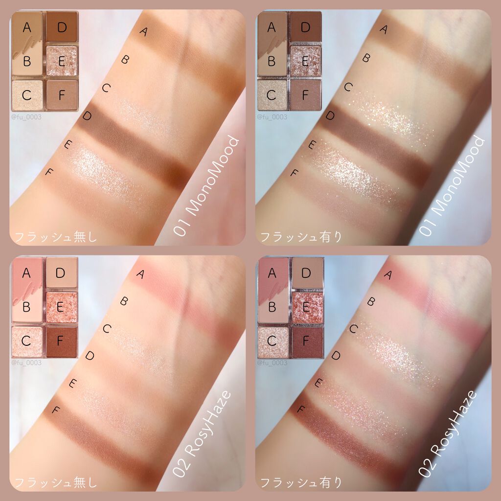 - 同系色陰影カラーと上品でクリアなグリッターの組み合わせの必要なカラーだけ詰め込んだミニアイパレット!