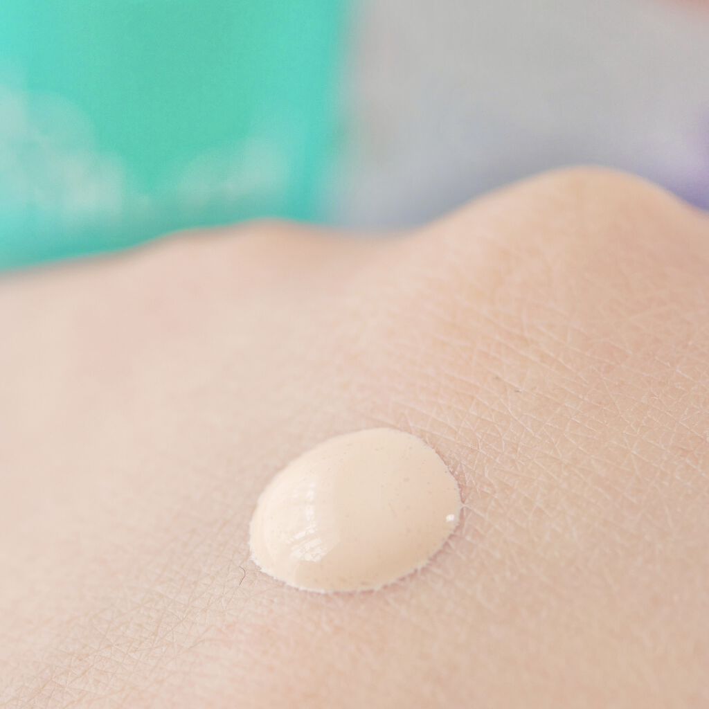 弾力のある“生ぷにっ質感”が特徴。ゲルを採用していて、ぷにぷに気持ちイイ❤ 肌への密着度が高く、ぴたっとフィットする。なのに、肌に伸ばすと素早くサラサラに! オイルとたっぷりの微細パール配合で、パウダーでは表現できない生っぽい艶感が✨ 透け感のあるアプリコット系のカラーで、誰にでも合いそうな色味。 10種の美容保湿成分配合で、乾燥も感じなかった。