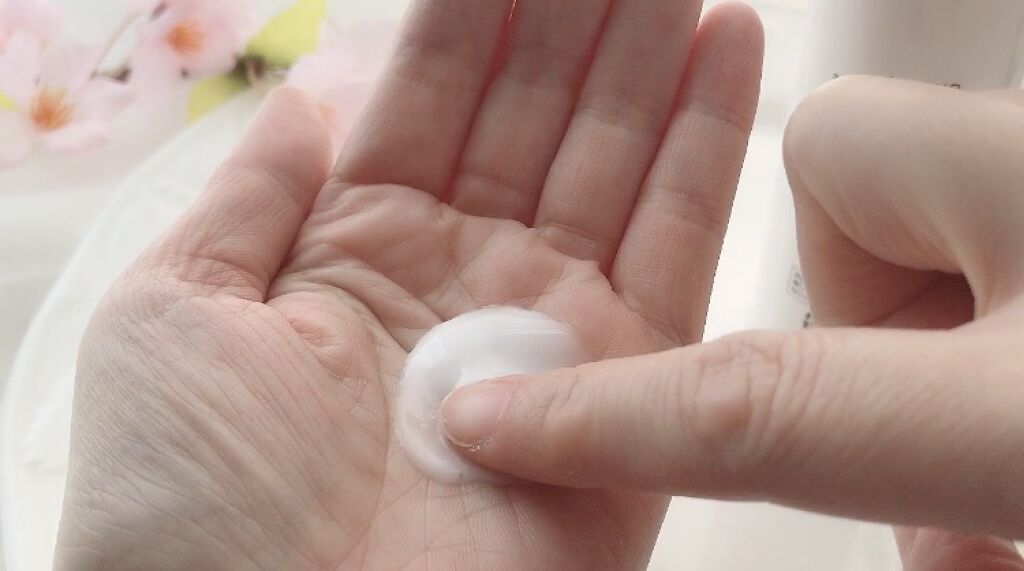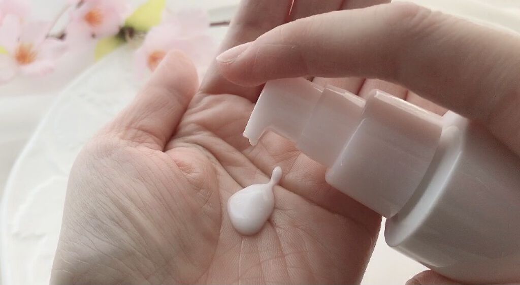 贅沢に美容成分を配合しているクリームは思ったより軽く、みずみずしく、素肌によくのびます。べとつきはしないかな。 プッシュしてエアレスボトルから新鮮なクリームが出てくるから量も調節しやすい🙆♀️ クリームはジェルのようにみずみずしいよ。少し高級化粧品によくあるような独特の香りがします。 ピンク色のエアーレスのボトル プッシュするとクリームが出てきます。
