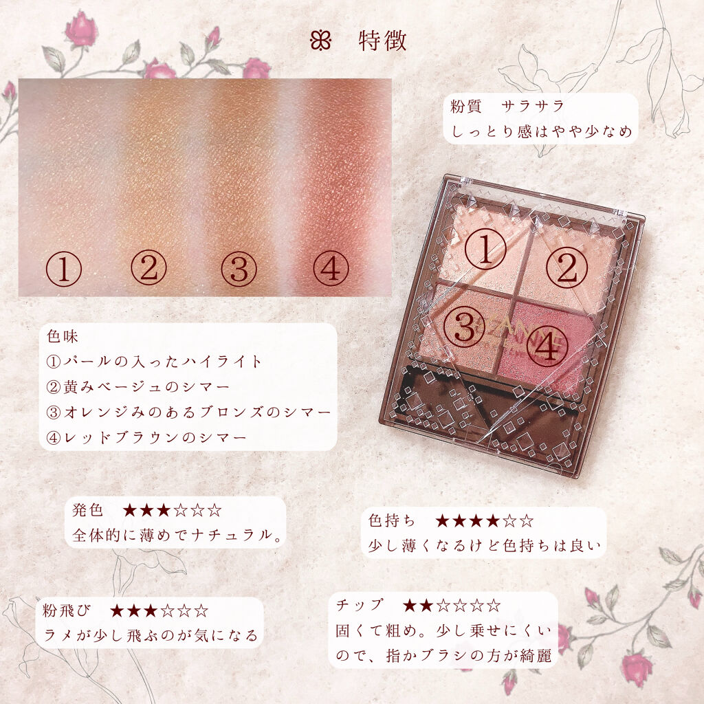 | アイシャドウパレットランキング第3位 | 粉質がふわっとなめらかになり発色もしっかりめになった! | 詳細を見る | |