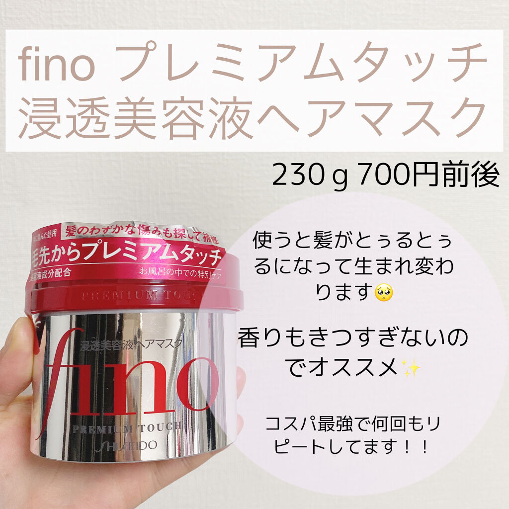 finoフィーノプレミアムタッチ濃厚美容液ヘアマスク230g/購入価格¥500(ドンキ)髪に浸透美容液🌟なめらかな髪に仕上げるヘアトリートメント傷みきった毛先までまるで根もとと同じくらいなめらかな髪に仕上げる◎とろけるように髪になじみ、髪1本...