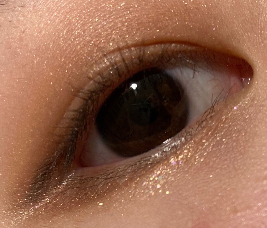 細かいラメと大きめのホログラムが混じっています꒰ˆ•ﻌ•ˆ꒱ 瞬きする度にキラキラしてかわいいです。 よく見ると色々なカラーのラメでてきていますがつけると自然ですฅʕ •ﻌ• ʔฅ