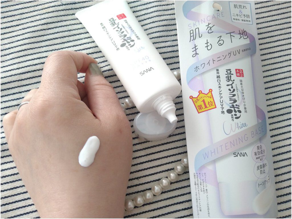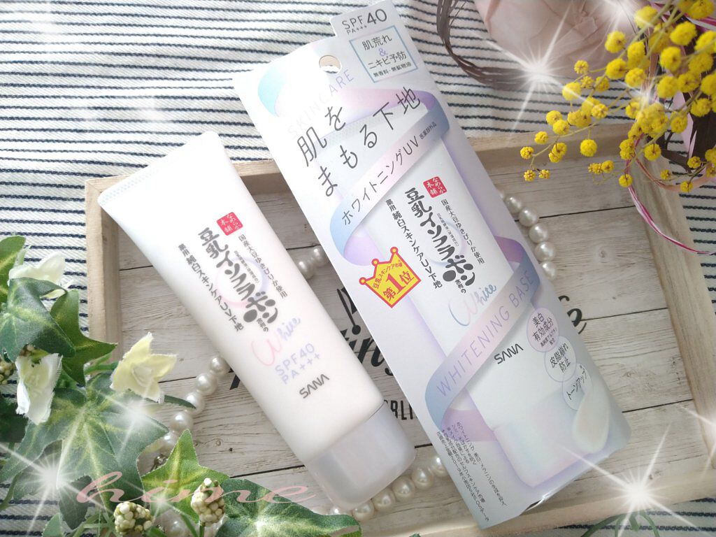 - <薬用美白スキンケアUV下地> 豆乳の美白スキンケアUV下地。肌荒れ&ニキビ予防しながら美白!メラニンの生成を抑え、シミ・そばかすを防ぎます。トーンアップ(メイク効果による)&皮脂崩れ防止。化粧水・美容液・乳液・クリーム・UVカット・化粧下地の1本6役。SPF40・PA+++。[販売名:サナ なめらか本舗 薬用美白スキンケアUV下地]