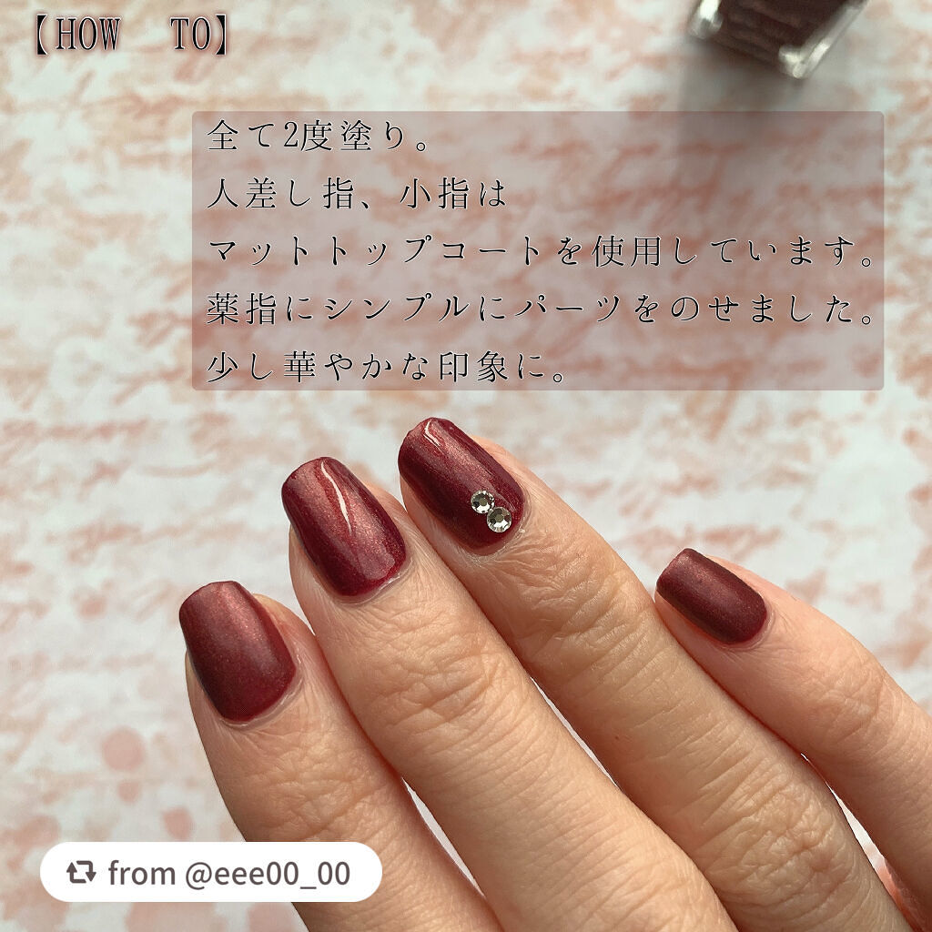 | ネイルランキング第7位 | トップコートもしてないのにツヤッツヤで、塗りムラが目立たない! | 詳細を見る | |