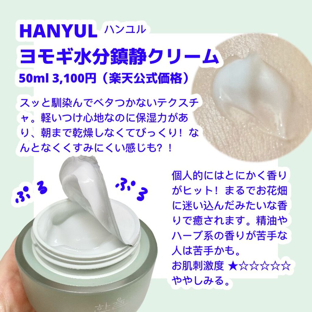 HANYUL(ハンユル) ピュアアルテミシア カーミングウォータークリーム | 4,560円 |