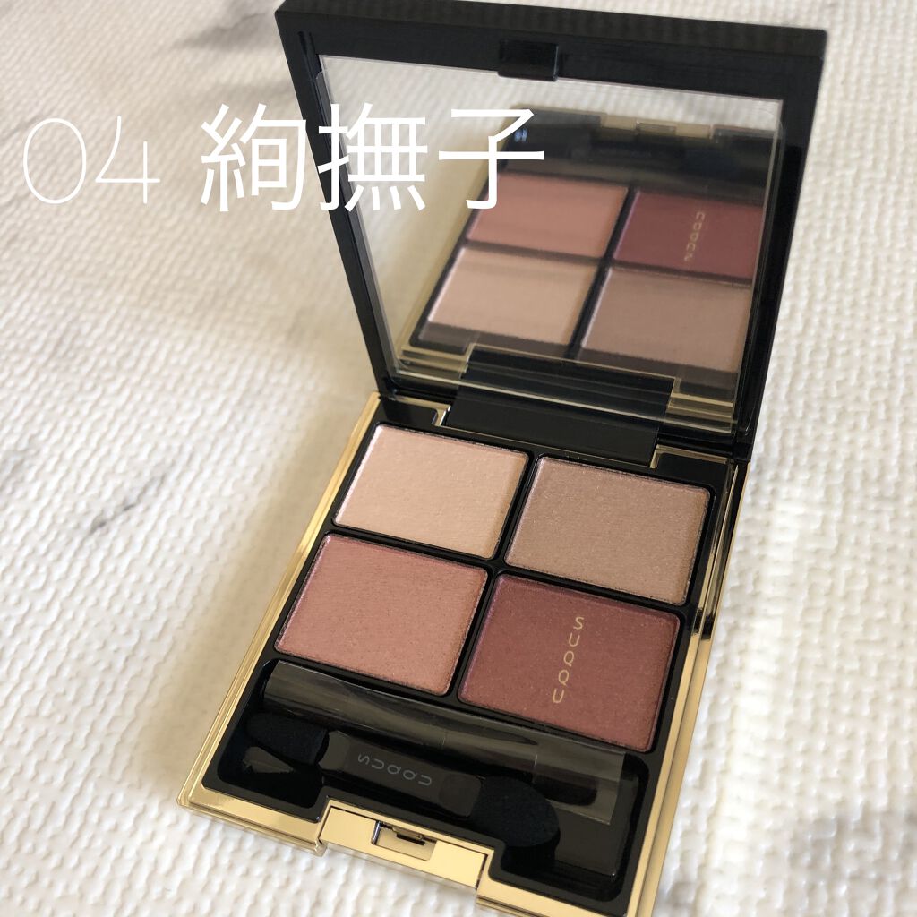 【SUQQU】✔️デザイニングカラーアイズS03霜花赤みブラウンがシックで惹かれたこちら…マット3色にラメが1色と潔い配色なのも好きです!甘艶のラメを控えめにしてくすませた感じかなーとおもいつつなんか外視感あるなと思ったら廃盤になったカネボウ...