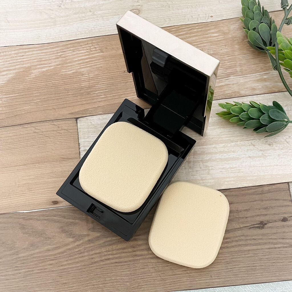 ふんわりとした仕上がりながら自然なツヤ感を演出するパウダーファンデ◎ 資生堂独自の「ムースプレス製法」により、美容液水とパウダーをムース状にして固めた軽やかなテクスチャーが特徴です。 肌に溶け込むようななめらかなフィット感で、毛穴や色ムラをふんわりとカバーしてくれる感じ。