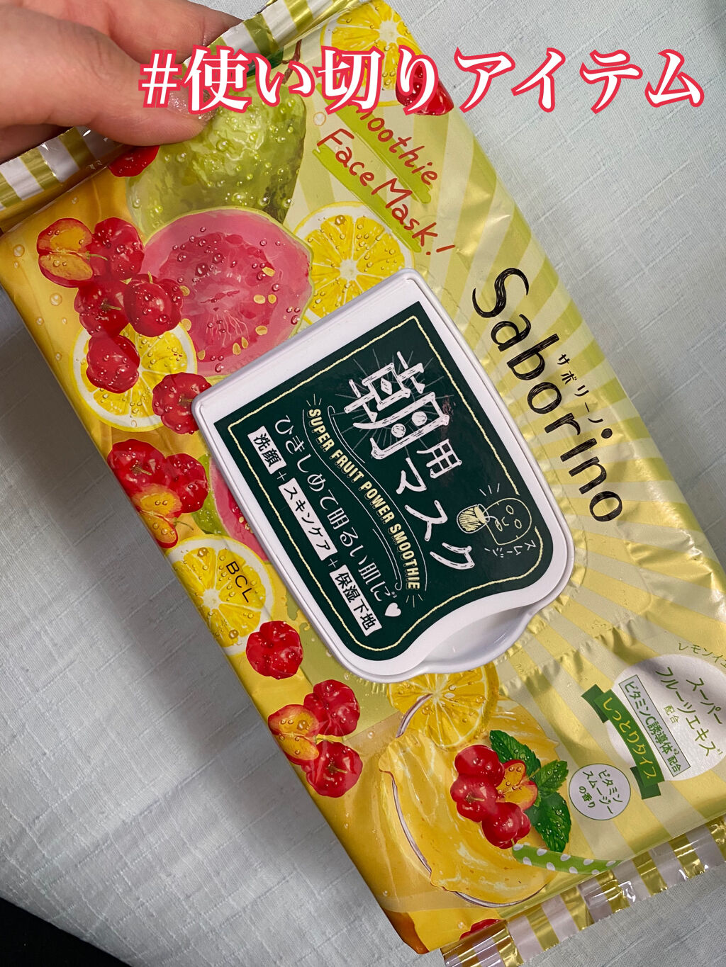 - ビタミンC誘導体配合 ひきしめて明るい肌に! 寝起き肌にそのまま貼るだけでOKのオールインワンマスク「サボリーノ 目ざまシート」から、「スムージーの香り」が限定登場。 フレッシュなスーパーフルーツエキスをたっぷり配合したスペシャルマスクです。 眠くてサボりたい朝も、洗顔からスキンケア、下地まで、これ一枚60秒で完了。 簡単なのにしっかりお手入れで潤って、化粧ノリの良い肌に! はがす時にサッと拭きとるだけで、余分な角質と汚れも一緒に絡めとります。 ■すっきりひきしめ&スーパーフルーツ素材の潤い ■しっとりタイプ