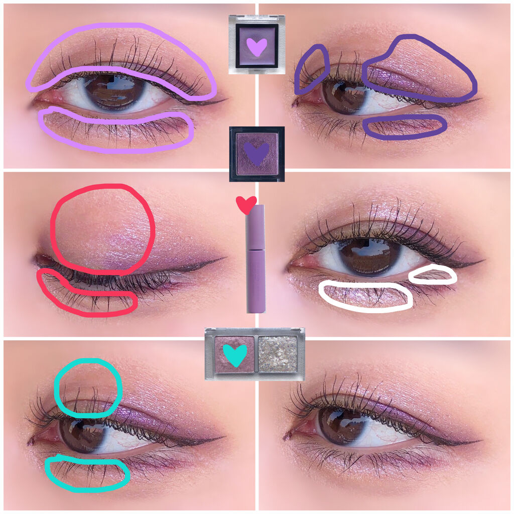 W デイリームードアップパレット01 ソフトモーブピンク (¥2420) プロ アイ パレット13 PICNIC BY THE SUNSET, グラムチェンジマルチパレット04 ユニコーンピンク (¥1890) グリッターぺディアアイパレットN°4 オールラベンダーフォグ (¥2950) シャドウパレット16 バイオレットニット (¥3610) ベターザンパレット06 PEONY NUDE GARDEN, 09 DREAMY LILAC GARDEN (¥2900)