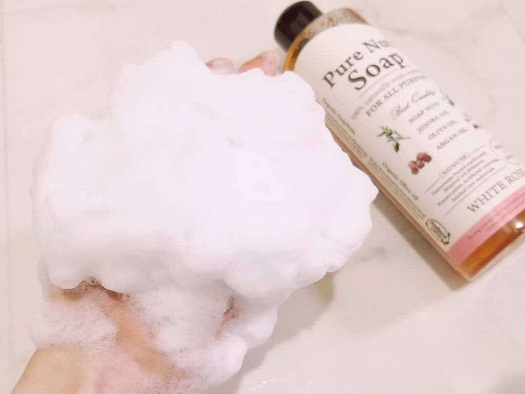 ナチュラセラピュアナッツソープホワイトローズの香り1本で、メイク落とし、洗顔、泡パック、ボディーソープ、スキンケア、毛穴ケア、角質ケア、頭皮クレンジングの役割をこなすマルチユース。100%天然由来の洗浄成分オーガニックのソープナッツ✨オリーブ...