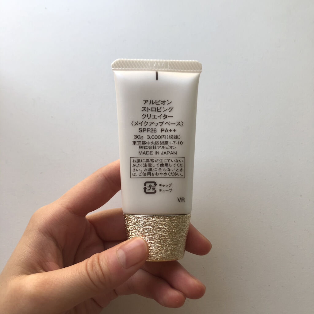 ALBIONアルビオンストロビングクリエイターメイクアップベース光を味方に肌の透明感を演出してくれます✨最初はエレガンスのコントロールカラー(グリーン)を購入するつもりでしたが、いつもお世話になっている店員さんからオススメされたストロビングク...