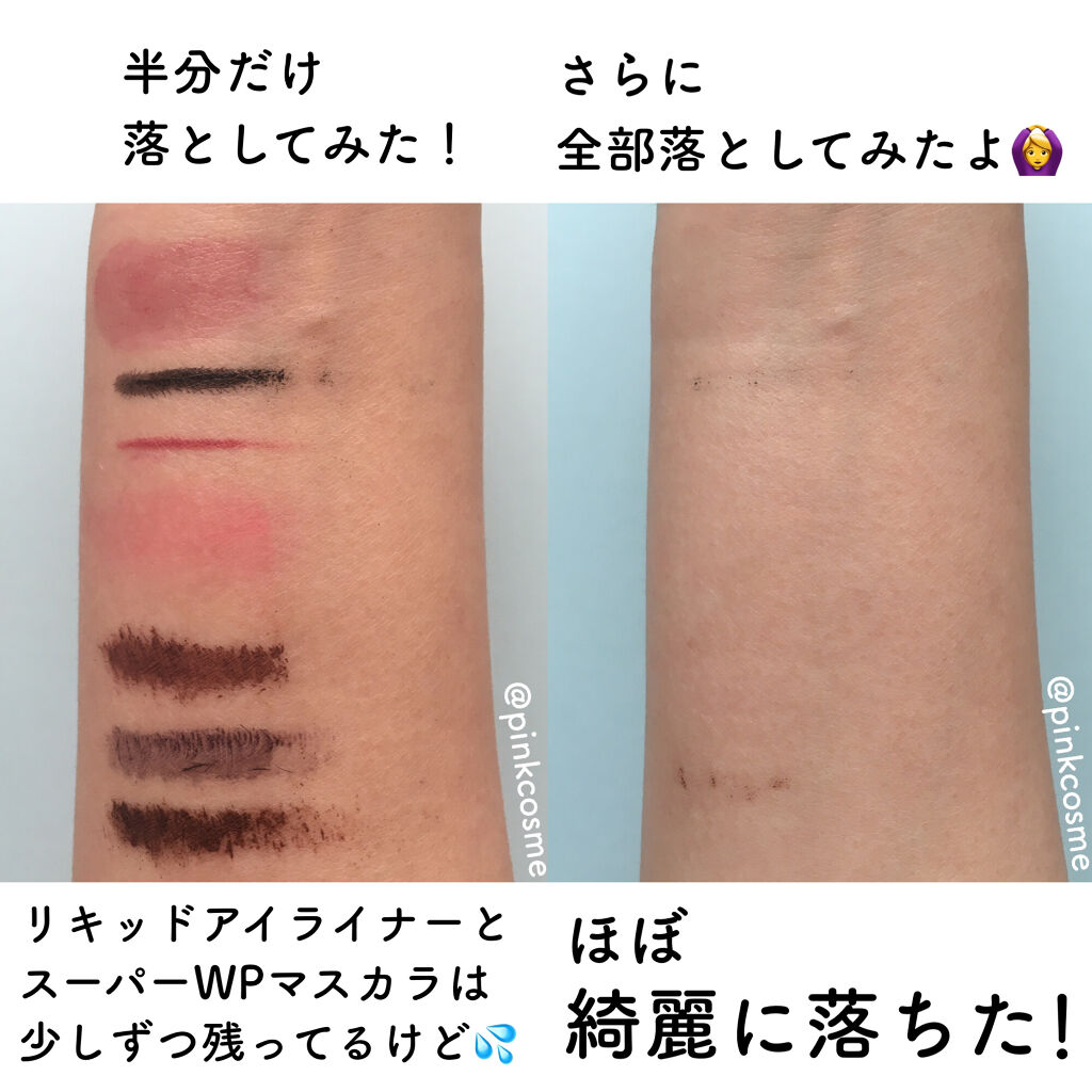 びっくりするほど真っ黒! 爽やかな香りがします メイク落ちはWPマスカラ以外はしっかり落ちました 部分的にポイントリムーバー使ったほうがいいかな デイリーで毛穴ケアしながらメイクを落とすにはちょうどいいクレンジングバーム!