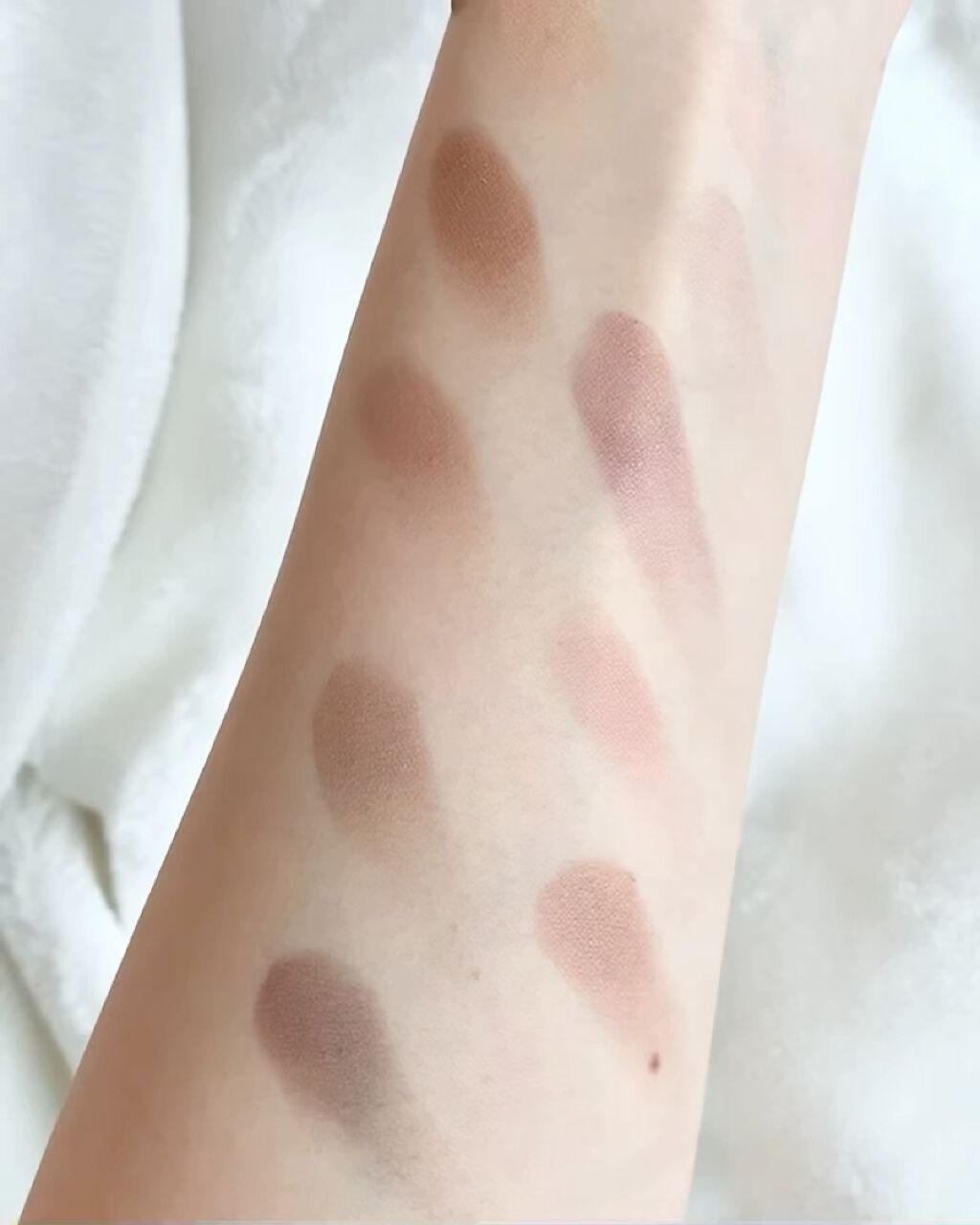 - ひとつのパレットにマット、シマー、グリッターなど多様な質感を贅沢に使用。塗る順序やカラーの組み合わせを変えるだけでデイリーメイクにも、特別な日のお出かけメイクにもできる優れもの。また粉飛びせず、まぶたにしっかり密着します。