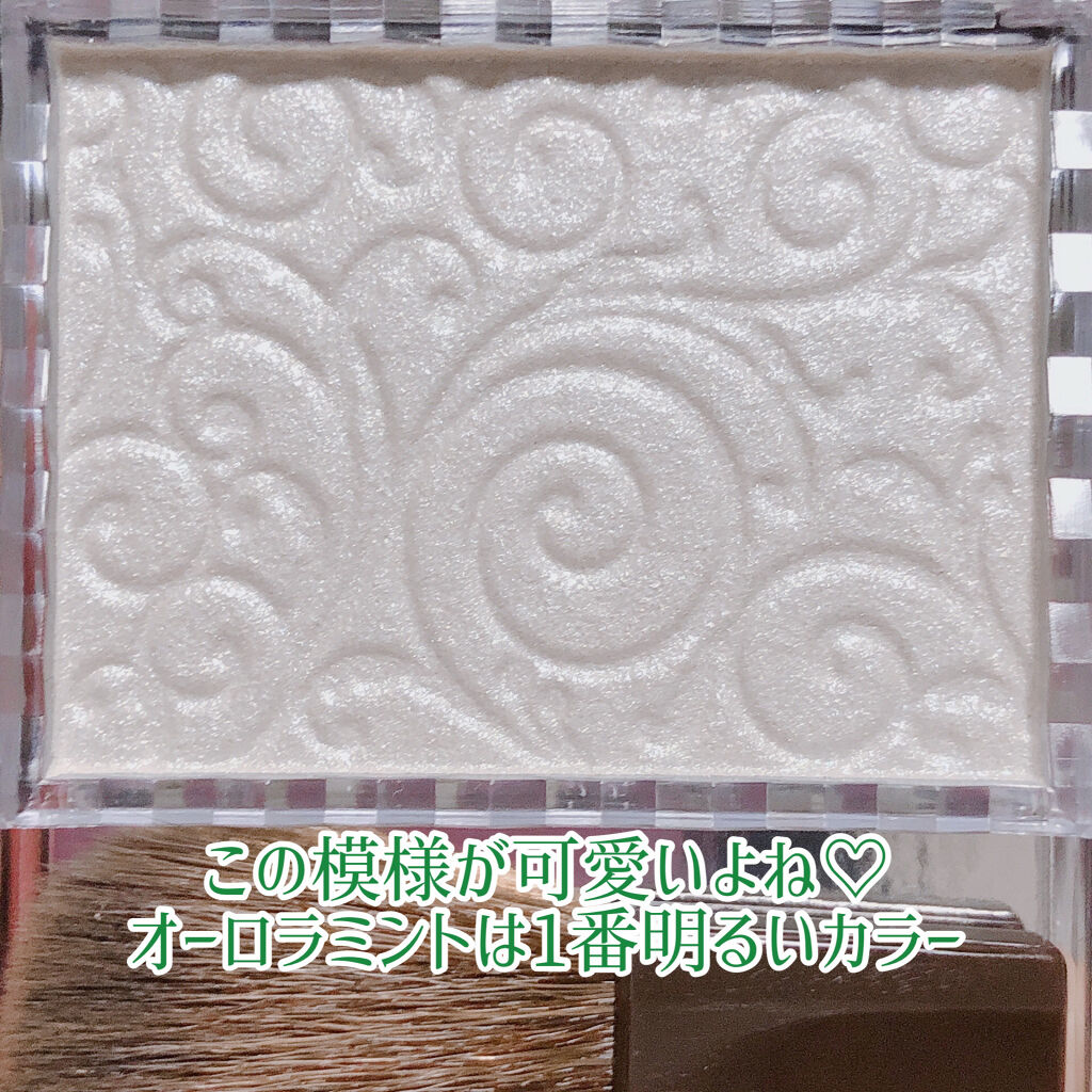 CEZANNEパールグロウハイライトの03番オーロラミントを使用してみました。色味が思ったより肌に馴染んで程よい艶感が出ました。また、偏光パールがいい感じに華やかにしてくれます!粉の質は硬めで、付属のブラシで塗ると少し粉飛びするので場所によっ...