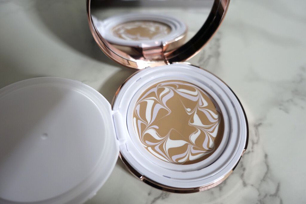 - お肌を健康的な肌印象に仕上げる美肌スキンケアファンデーションです。 天然成分で優しい使い心地。敏感肌も使用可能。また、ファンデーションは3色のマーブル柄になっており、それぞれの色に機能性があります。 ホワイトは保湿、パープルはハイライト効果、ベージュはカバー。 この3色の機能で明るい印象の素肌のようなメイクアップを仕上げます。