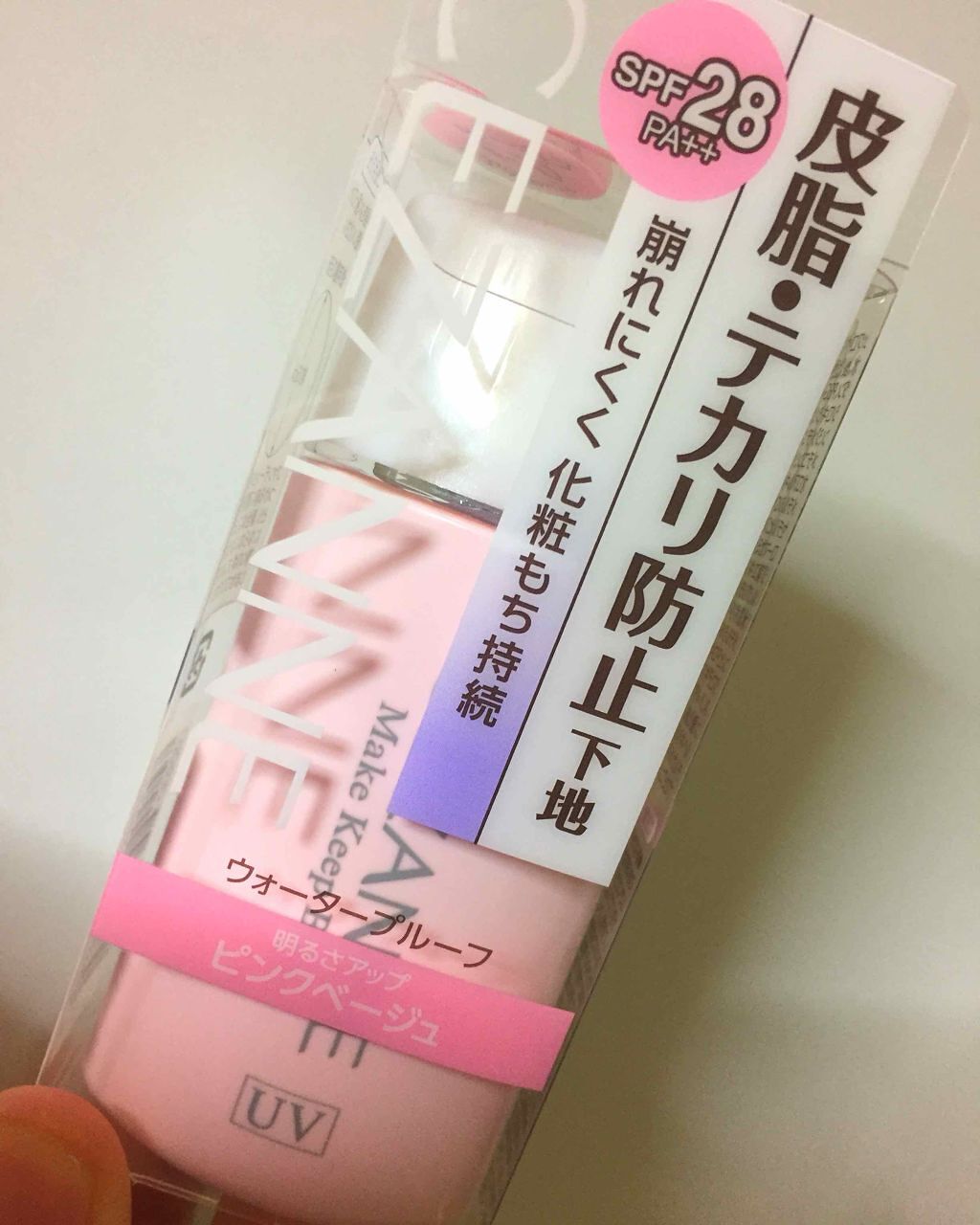 - SPF28・PA++ テカリにくい・崩れにくい、化粧もち下地。 メイク崩れの原因となる皮脂を吸収。 ベタつかずサラサラの感触で、ファンデーションの美しい仕上がりが続きます。 ノンケミカル処方(紫外線吸収剤不使用) 水・汗に崩れにくい、ウォータープルーフ処方。 皮脂吸着パウダーが毛穴の凹凸をカバーし、さらに光拡散効果で目立たせません。 化粧もち持続成分(ロングラスティング成分)配合。