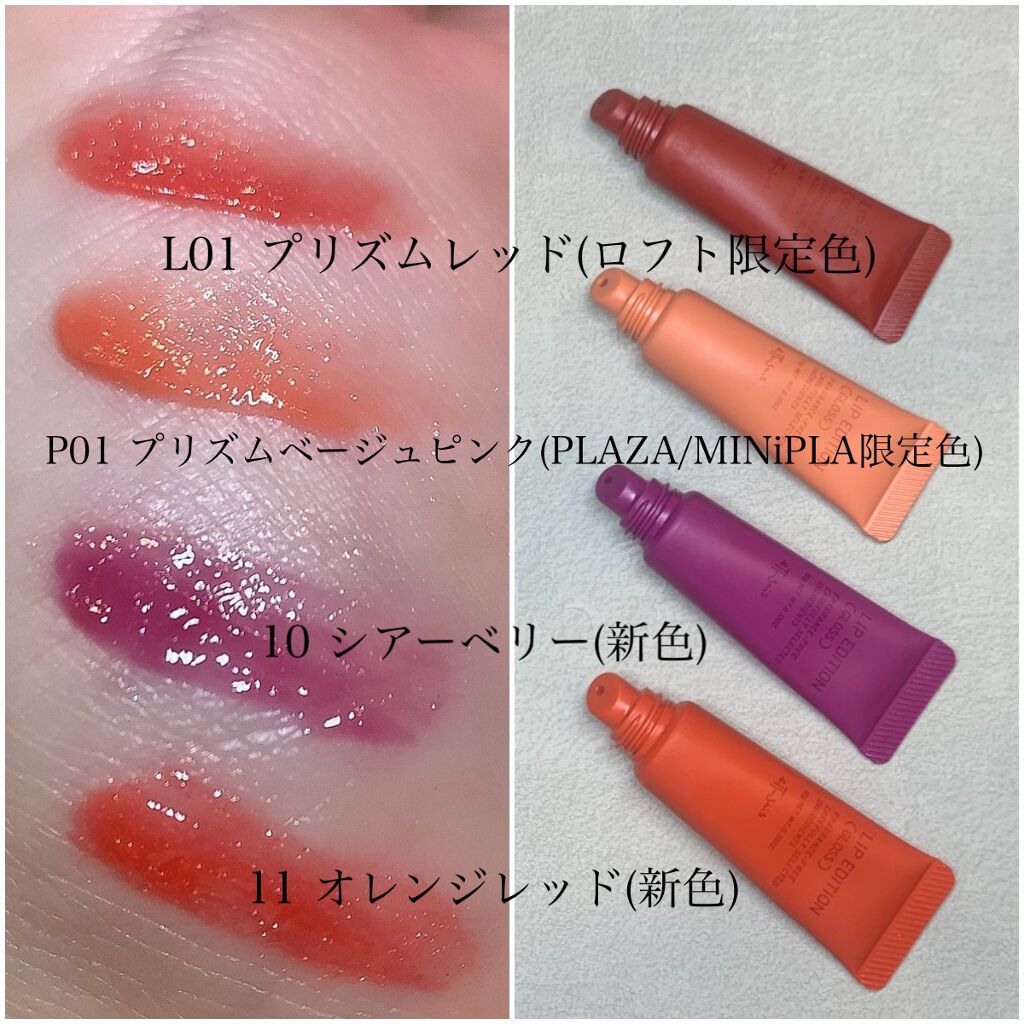 - ブルベでも、イエベでも 自然になじんでべたつかない 新感覚グロス ●塗りやすい斜めカット ●うるおい長時間持続 ●グロスなのにべたつかずサラリとフィット ●チューブの口もとを直接唇にあててのばすか、指先にとってお使いください。 ●食後にお使いになるときは、唇をひと拭きしてからご使用ください。 ●ご使用後はチューブの口もとをティッシュペーパーなどできれいに拭き、キャップをきちんと閉めてください。容器のネジ部やキャップの内側に中味がたまると、キャップを閉めたときに中味が出てくる場合があります。そのため、いつも清潔にしてお使いください。 ●日のあたるところや高温のところにおかないでください。 ●保管条件によって、最初に透明のオイルがにじみ出ることがありますが、品質に問題ありません。 ●衣服やその他のものにつくと落ちませんので、ご注意ください。