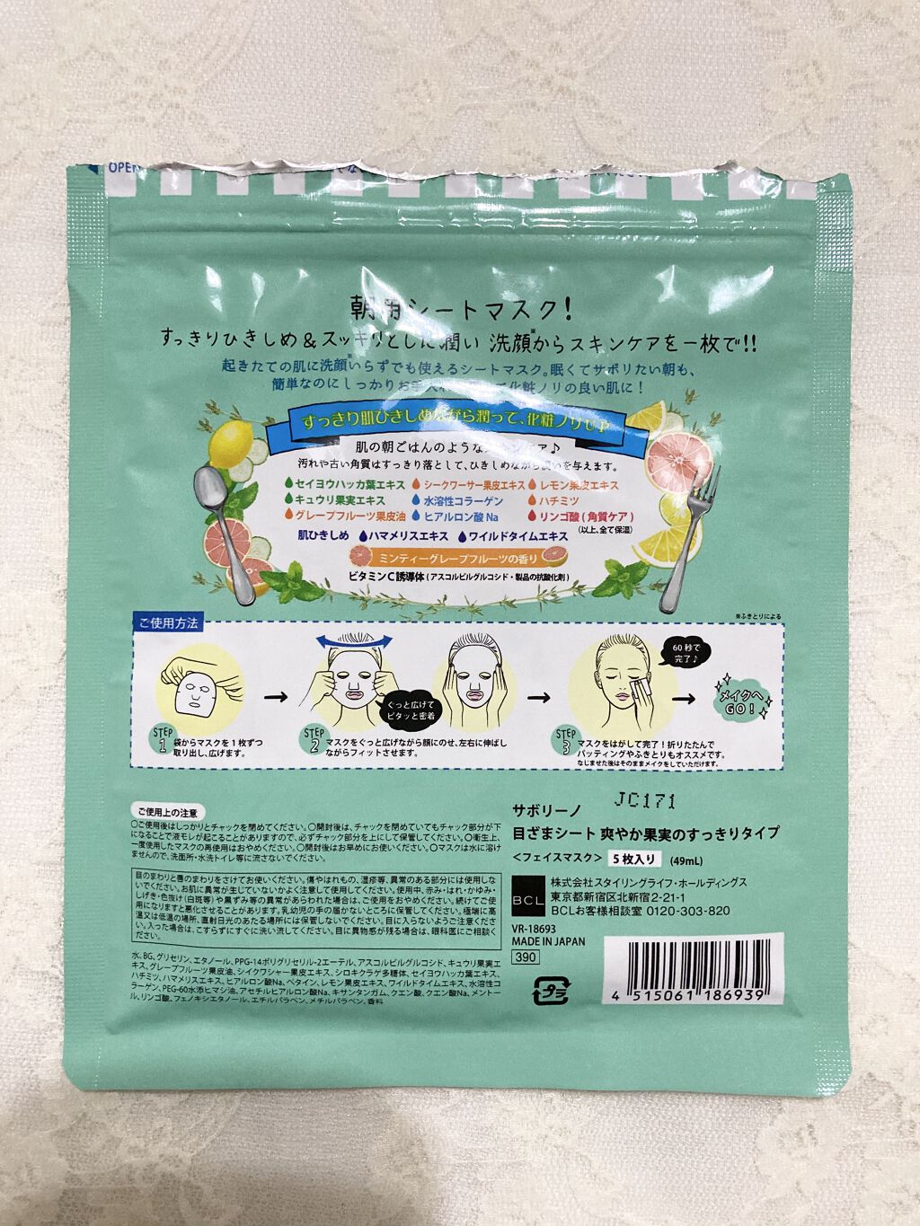 - シートマスク1枚で洗顔+スキンケア+保湿下地が完了! 寝起きの肌にそのまま貼るだけで、洗顔、スキンケア、保湿下地までできる朝用のオールインワンマスクです。 すっきりタイプの目ざまシートは、潤いを補いながらもさっぱりした使用感。 クールな清涼感で一気に目覚めて、シャキッとスッキリ! ミンティーグレープフルーツの香り