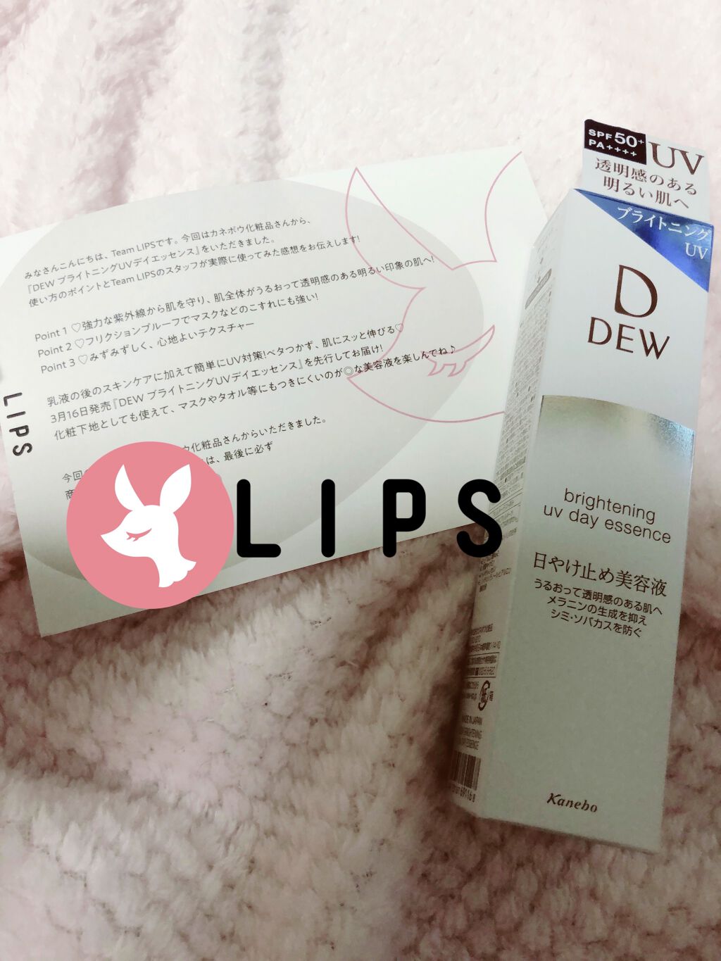 ⭐️DEW⭐️ブライトニングUVデイエッセンス40g3500円(+税)LIPSを通じてカネボウ様よりいただきましたありがとうございます😊3/16発売の日焼け止め美容液です化粧下地としても使えます✨SPF50+PA++++で高い紫外線防止効果だ...